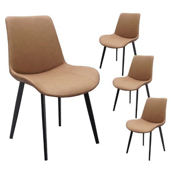 Product name: Brown PU Leather Dining Chair with Metal Legs, Modern Upholstered Chair Set of 4 for Kitchen, Restaurant, Living, Meeting Room