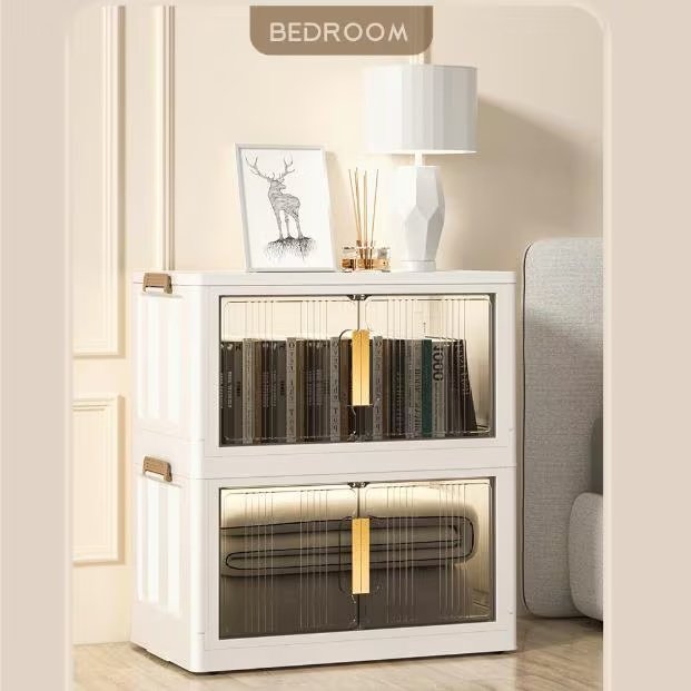 Product Name: 4 Pack Stackable Storage Bins Folding Storage Bins with Lid, Closet Organizers and Storage, Folding Storage Box with Doors Collapsible Storage Cabinet Bins (29.2″ Wx15.4 Dx57.7 H)