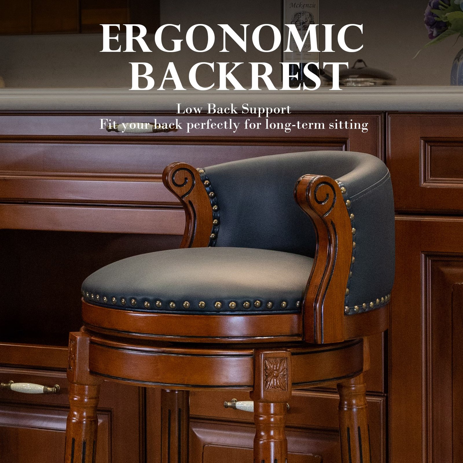 【Function of the bar stool】 The 360-degree rotation highlights the contoured backrest to provide optimal dining comfort. With a seat height of 29.5 inches, the bar chair is suitable for home kitchens, dining rooms, living rooms, dens or bars.