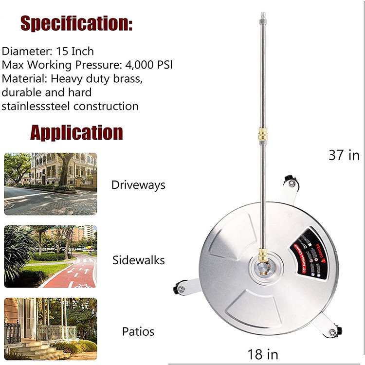 High Pressure Stainless Steel 3-wheel Extended Pole Floor Cleaner