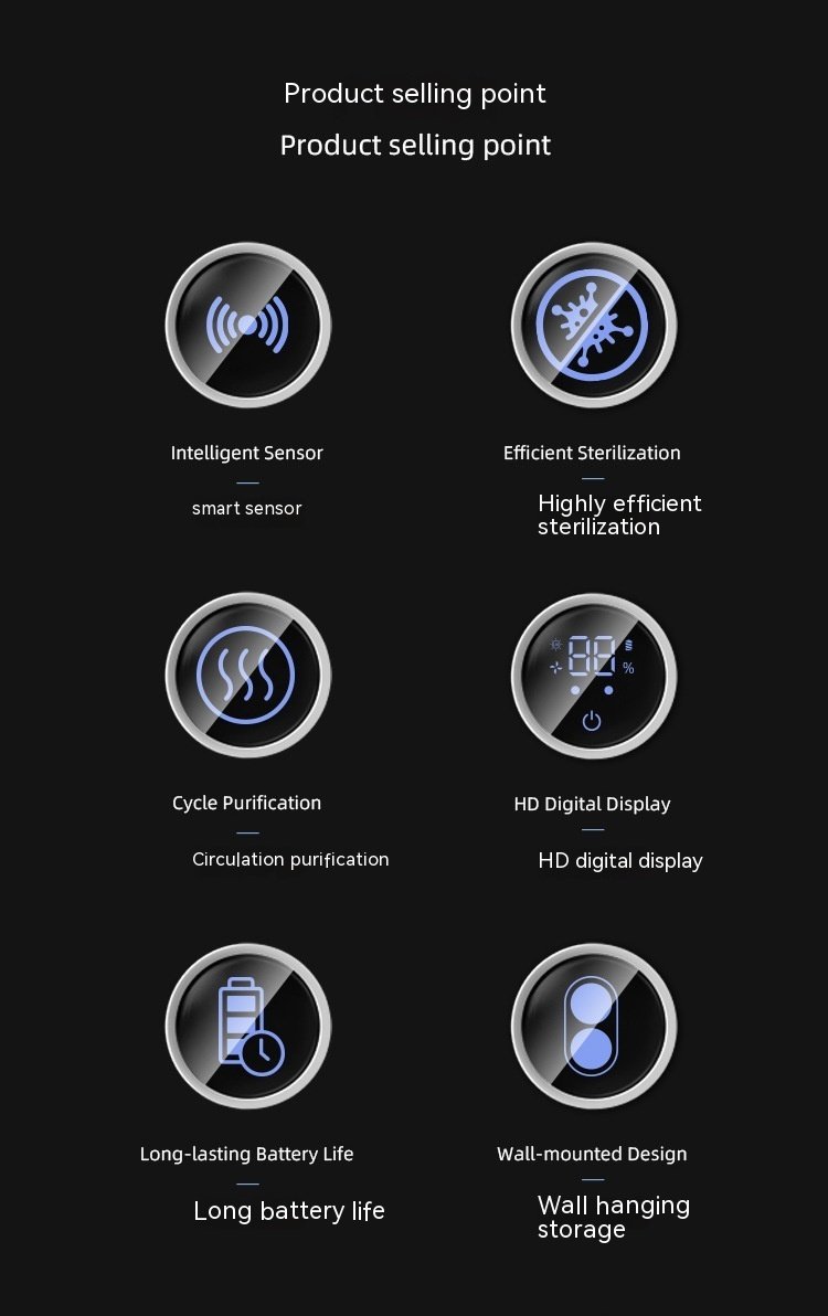 【Intelligent Cyclic Purification】Our toothbrush sanitizer features intelligent cyclic purification, providing continuous 24/7 protection by automatically circulating every 3 hours.