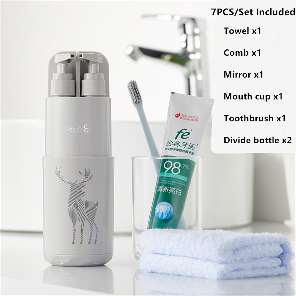 2.Five-piece set contains: bottled x2; mug, mirror, comb.