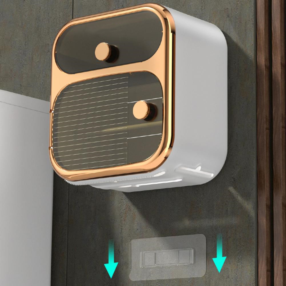 A wall-hanging design of this tissue box saves space and is easy to install. It is self-adhesive, free of punching and no trace installation, and will not hurt the wall, and it is firmly pasted and can bear strong load.